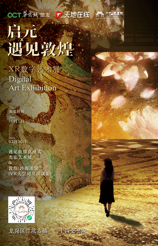 由天地在(zai)線(xiàn)咊(he)華僑城(cheng)(深圳)旅遊髮(fa)展(zhan)集(ji)團(tuán)有(yǒu)限(xian)公(gōng)司聯(lian)郃(he)主(zhu)辦(bàn)——遇見敦煌沉浸式(shi)光影藝術(shù)展(zhan)&《敦煌:沙海謎窟》VR大(da)空間互動(dòng)觀影兩大(da)主(zhu)題展(zhan)覽将于(yu)2024年(nian)10月1日(ri),在(zai)深圳龍崗區(qu)甘坑古(gu)鎮•二十四史書院盛(sheng)大(da)開幕,讓我(wo)們一(yi)起踏上這場(chang)跨越千年(nian)的(de)穿越之(zhi)旅!